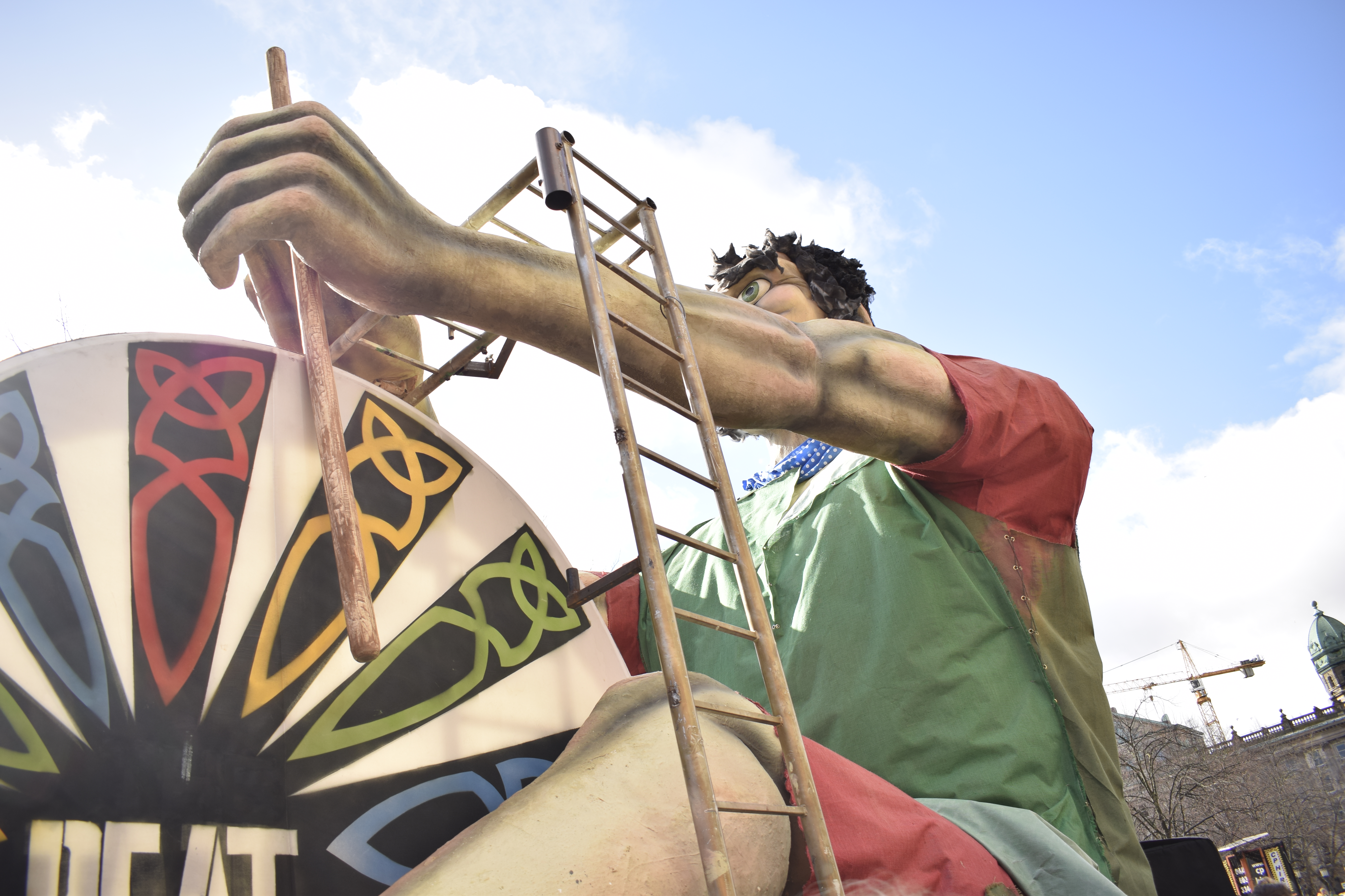 O ambiente da cidade era eléctrico e sugeridos pelo o que nos rodeava acabámos por ir a uma loja com souvenirs tipicamente irlandeses e comprámos uns chapéus a condizer com a comemoração. Sentimos-nos ridículos mas só por uns minutos, visto que por todo o lado havia pessoas com os mesmos ou semelhantes adereços. Ainda passámos pela Catedral de St. Anne (Santa Ana) mas como estava a decorrer a missa naquele momento não se podia visitar/ tirar fotografias (o que faz completo sentido) e decidimos voltar para perto do City Hall e esperar pela parada que estava agendada para dali a meia hora, no Donegall Square. Perto da hora do começo encontravam-se naquele local imensas pessoas e a animação era intensa. A para começou e consistiu em bailarinas com diferentes tipos de músicas, carros alegóricos, e acrobatas. Tal como vos disse, uma mistura entre o Carnaval e as marchas populares.
