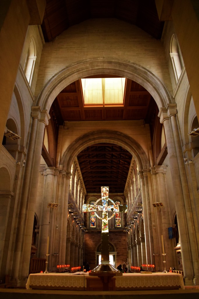 Seguindo com a nossa viagem, dirigimos-nos novamente à Catedral de St. Anne. Felizmente já tinha acabado a missa e podemos apreciar a beleza desta igreja à vontade e como tal tirar fotografias. A entrada também aqui é gratuita. A catedral de St. Anne é também conhecida como a Catedral de Belfast. O interessante é que esta igreja é uma igreja protestante que serve duas dioceses, a Connor e a Down and Dromore e por isso é dirigida por dois bispos, um para cada diocese.