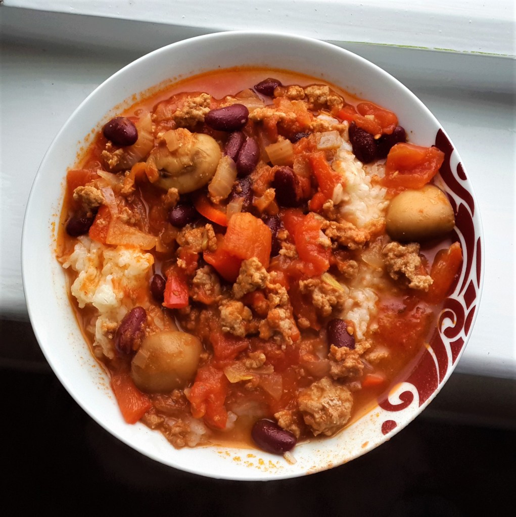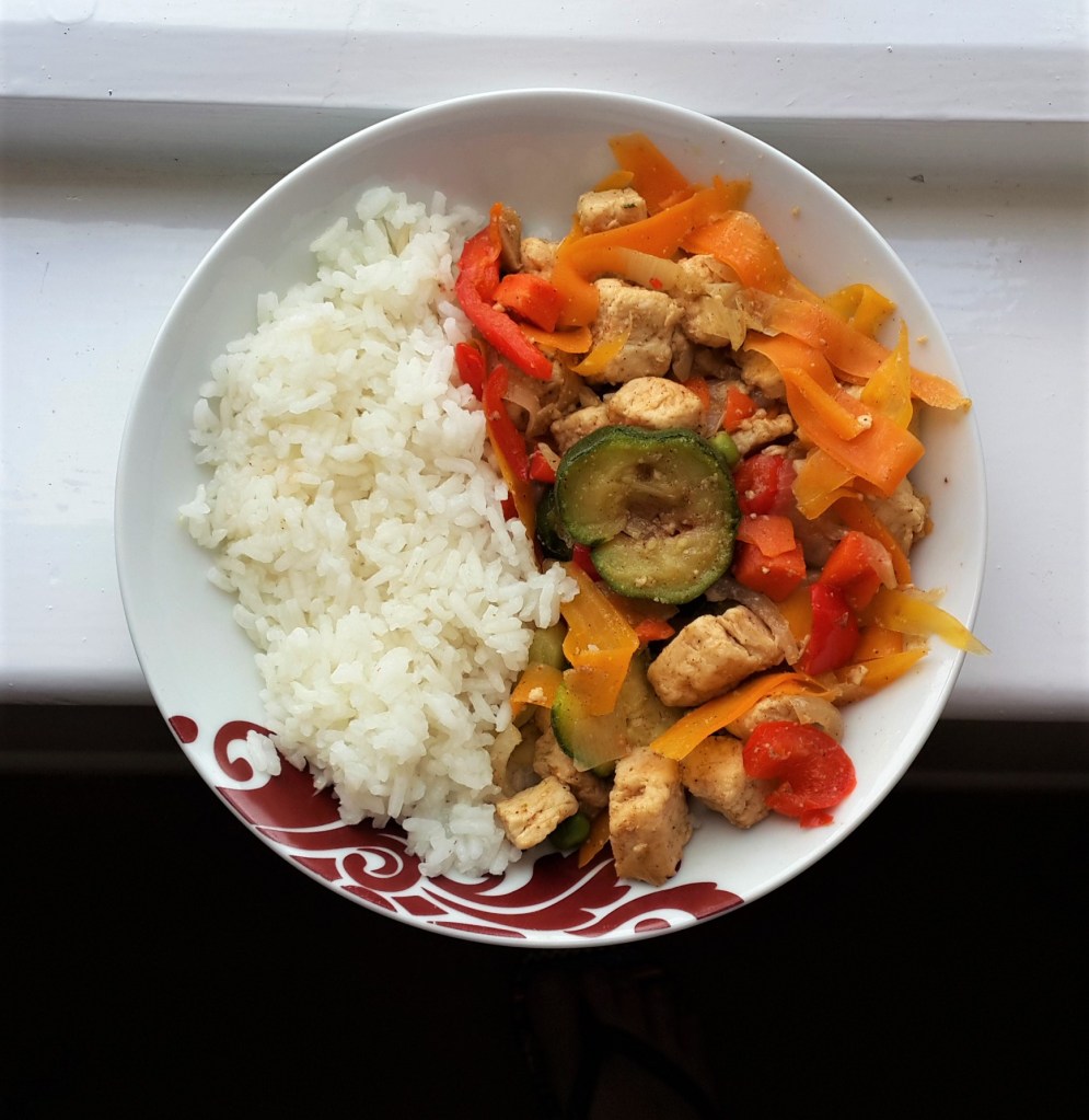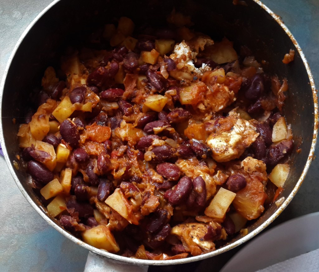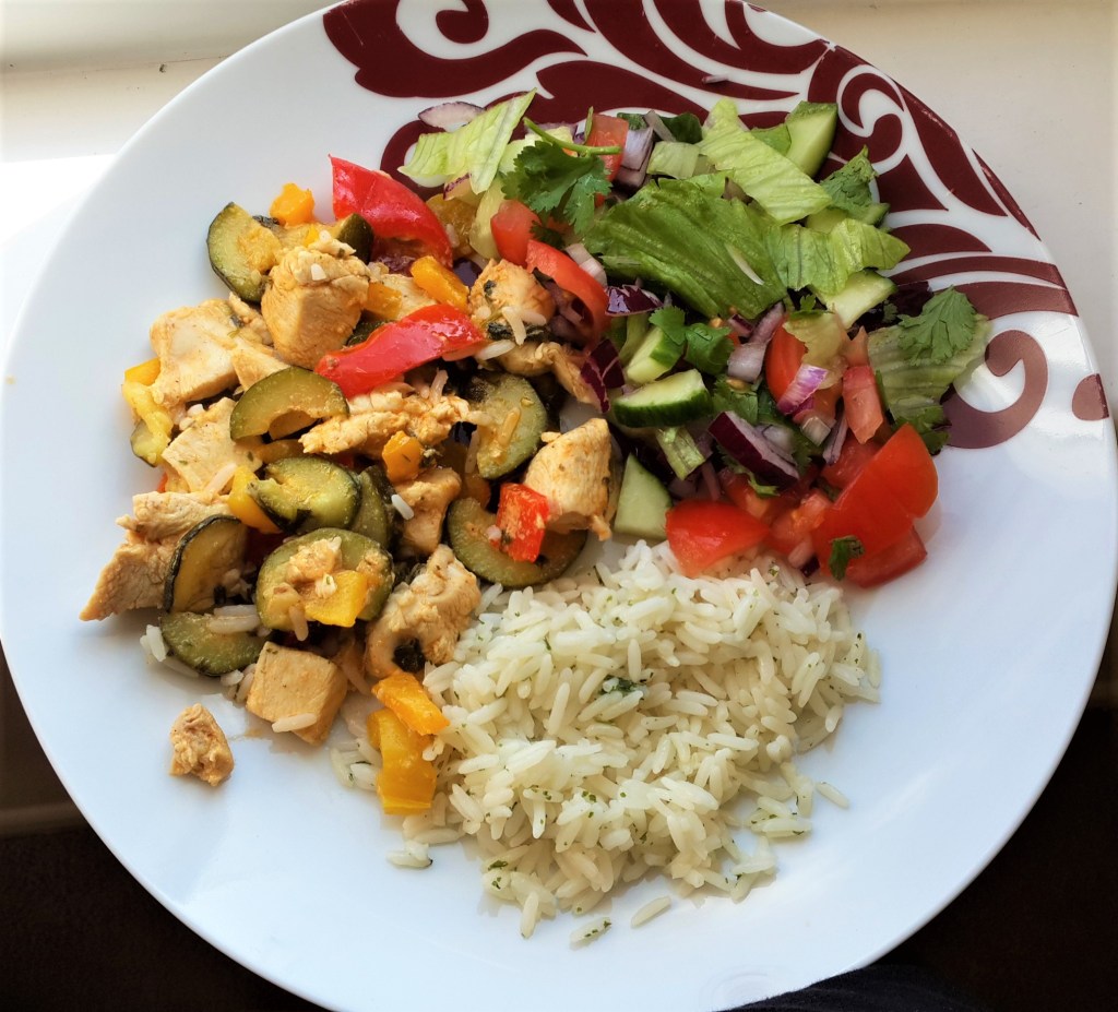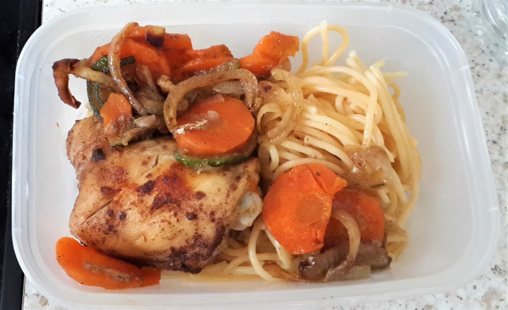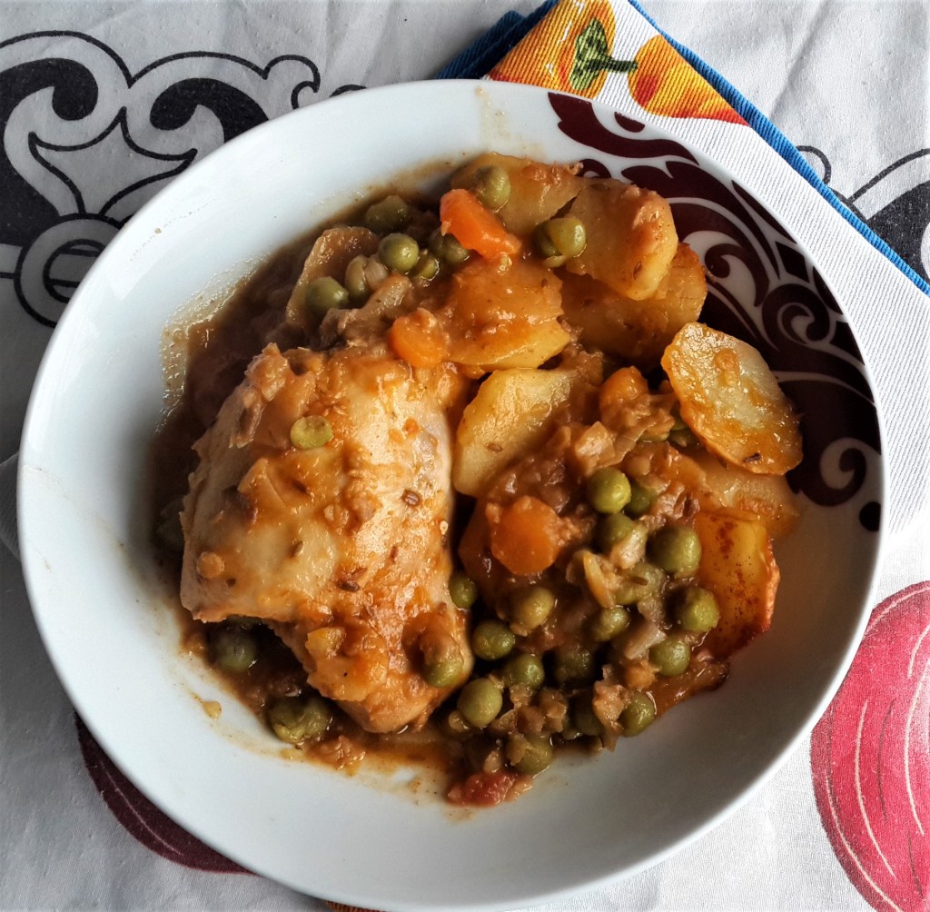 Frango assado no forno com arroz e chouriço