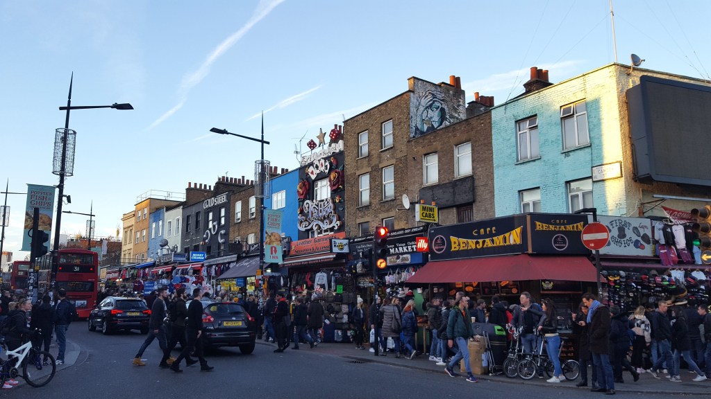 Londres é uma cidade enorme e em cada canto há algo para ver ou viver. É-me difícil escolher e dizer para fazer isto ou aquilo quando vai depender muito dos gostos de cada um. E dependendo dos gostos assim vão ser os locais em Londres que mais vos agradará. Talvez um dos locais mais conhecidos, pela sua diferença, é Camden Town. Este é talvez um dos locais que mais tenho visitado em Londres. É uma zona que tem de entrar em qualquer roteiro turístico, não só pelas suas ruas com as muitas lojas chamativas pelo seu design, como o canal por onde se pode passear, mas também pelo mercado com imensa comida deliciosa. Camden Town é talvez uma das zonas onde a diversidade cultural é mais sentida pois é um local onde se mistura todos os estilos. Eu adoro esta zona exatamente por isso, independentemente do estilo, do que se gosta de vestir ou como se parece fisicamente, vai-se sempre integrar nesta comunidade. É por isso uma zona muito procurada talvez mais por uma geração mais nova, mas não deixa de ser um local a visitar e a apreciar como turista. Naquelas ruas encontra-se o significado puro de uma cidade multicultural.