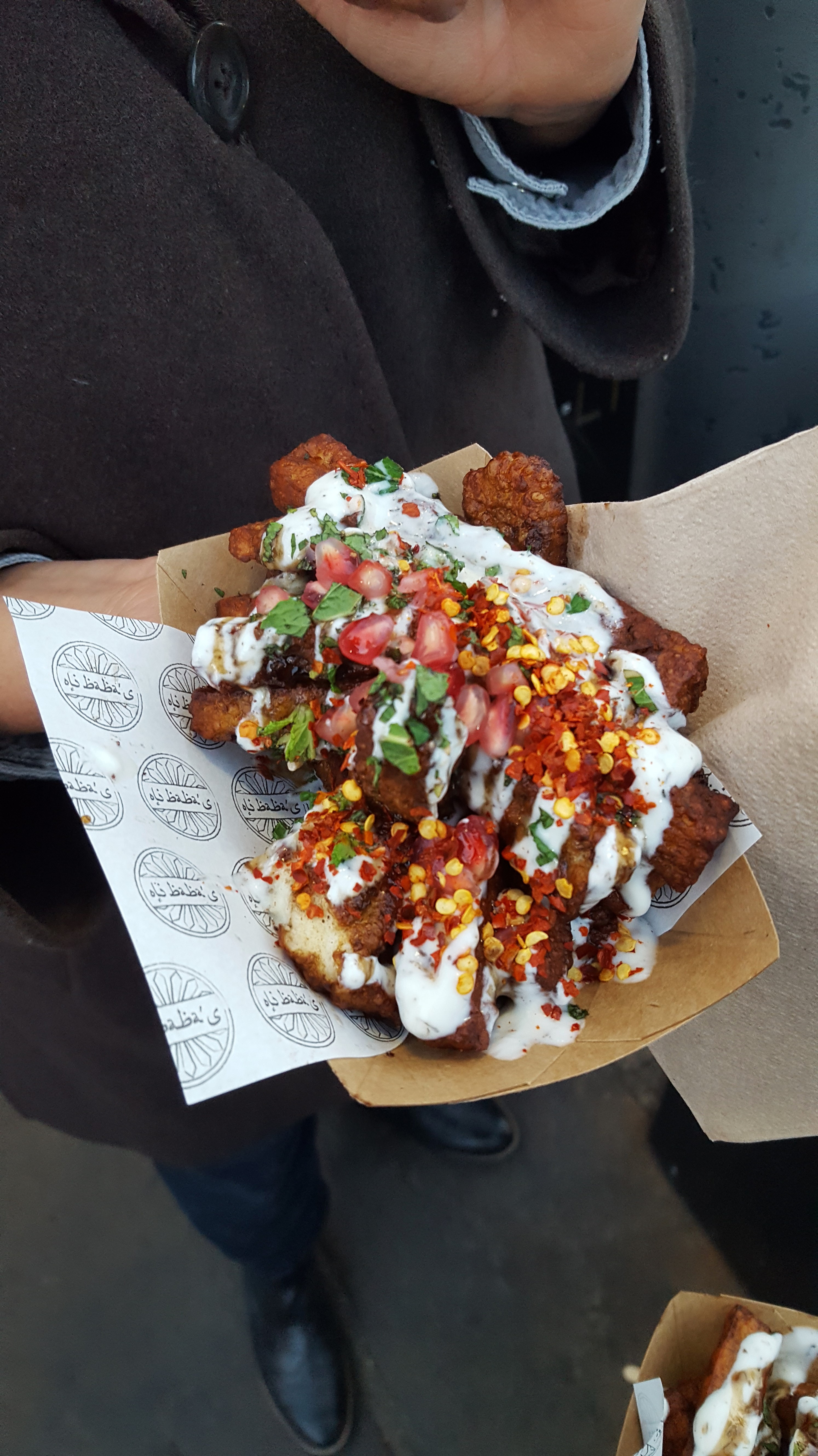 Em Camden Town o mercado é talvez o sítio central para comer. Aqui encontrarão várias bancas de cozinhas diferentes e todos de preços bastante acessíveis. Eu recomendo as Halloumi Fries de banca Oli Baba’s para petiscar e para uma refeição mais substancial, se também se quiserem sentar, porque no mercado torna-se difícil, a Pizza Pilgrims. Também podem aproveitar a promoção do restaurante Tai Pan Alley, se quiserem um jantar com bebidas à descrição. Deixo aqui o website se quiserem experimentar: https://www.taipanalley.co.uk/bottomless-dinner