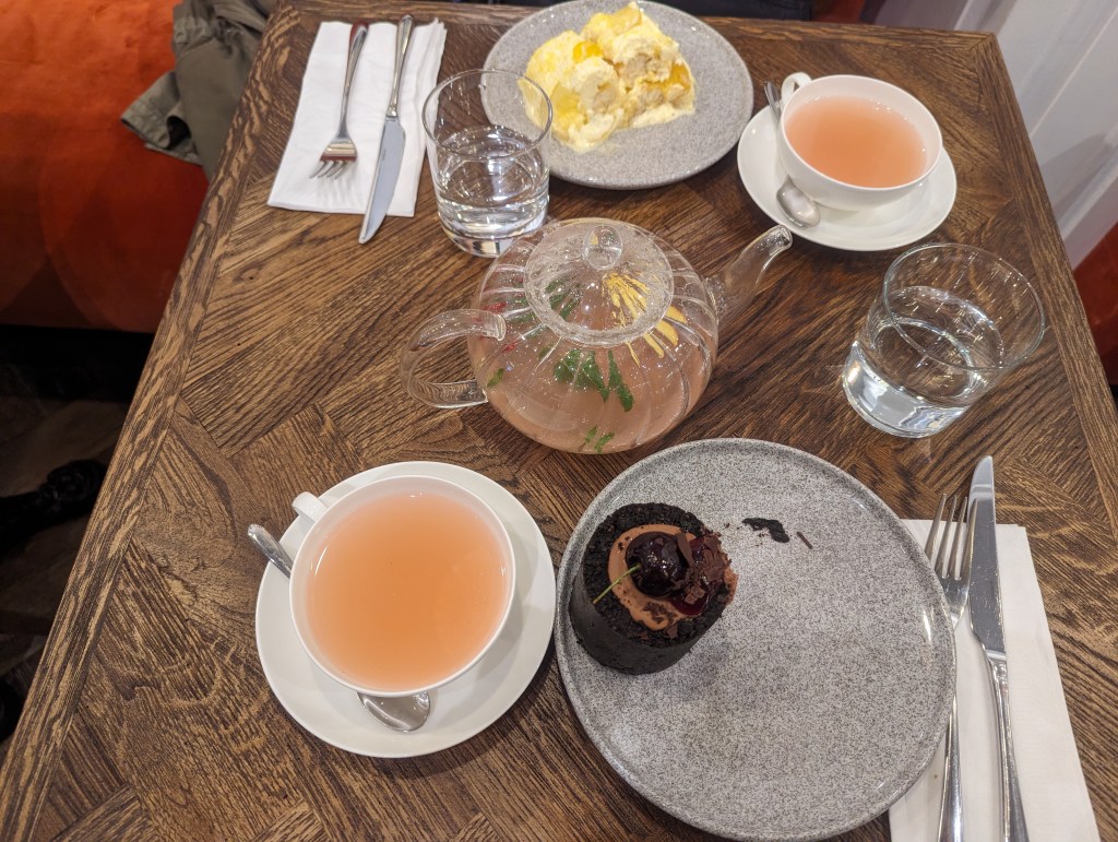 Começar o dia na pastelaria L’ETO Caffe é com certeza um dia especial. A pastelaria abre às 9 da manhã e fecha às 8 da noite, por isso sempre podem decidir tomar o brunch aqui de manhã e depois voltar para um chá e bolo à tarde. Falei dos que adoram doces porque o principal são os diversos e deliciosos bolos, mas de manhã também há várias opções desde bagels com salmão até panquecas. Se, no entanto, vierem pelos bolos existem sempre muitas opções e o difícil será mesma a escolha. Para acompanhar o bolo nós fomos para o chá e um bule deu bem para duas pessoas. Também podem ser atraídos pelos cafés oriundos de diferentes países ou pelos smoothies. A decoração é feminina, mas de uma maneira subtil.