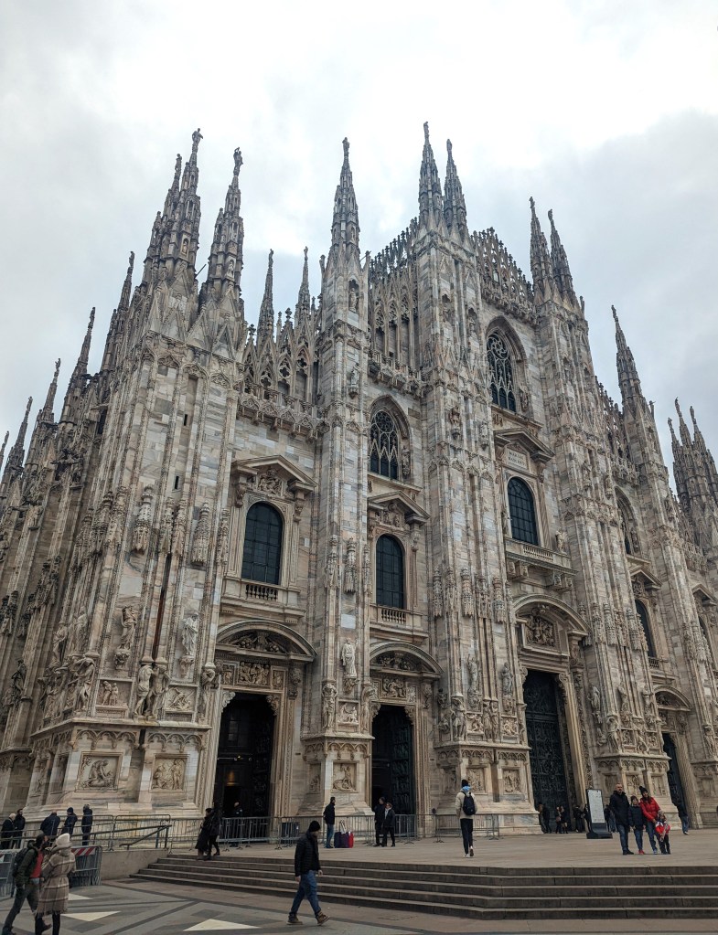 Depois do pequeno-almoço fomos em direção ao ponto principal da cidade – a Catedral! Se procurarem em qualquer social media com a localização de Milão conseguirão vislumbrar a catedral por detrás da pessoa que pensa que é modelo do Instagram ou que ser fotografado é a razão da vida deles. Eu ontem fiz uma pesquisa sobre o lago Como só para ver se tinha perdido alguma coisa de especial durante a viagem. Em 100% dos posts só vi mulheres. Alguns homens, mas muita mulher. E pouca paisagem que é aquilo que vale a pena ver quando se vai a outro país. Mas todos devem concordar que já devem ter reparado que as pessoas nem olham mesmo com olhos de ver para o que estão a visitar. Ou estão a tirar selfies ou a tirar fotografias aos amigos/família e a pensar na próxima selfie. O mesmo se passa quando se procura pela catedral, vê-se a fachada ao fundo mas sempre tapada por vestidos, pernas e cabelos.