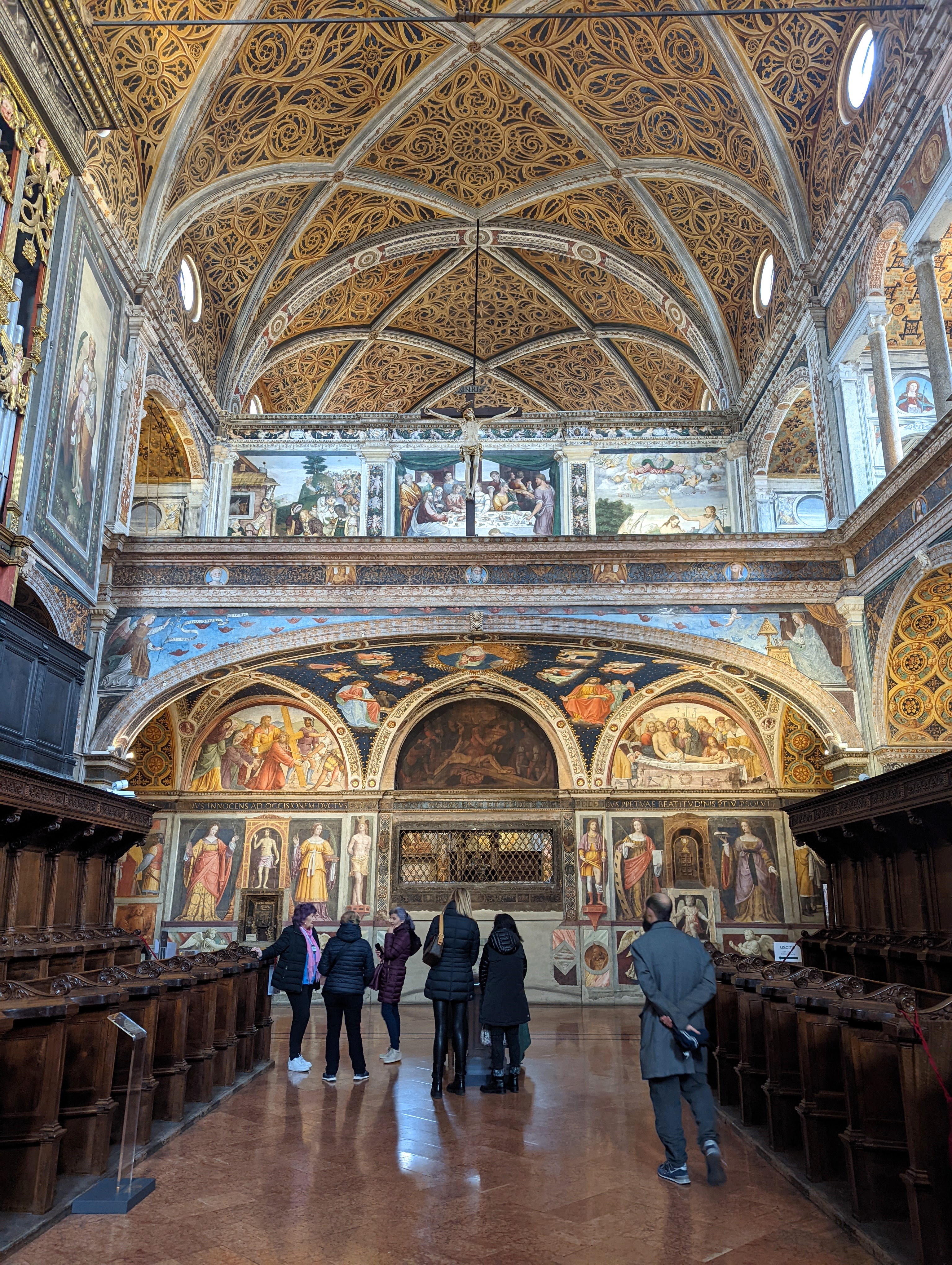 Andando mais um bocado por Milão fomos visitar Chiesa di San Maurizio al Monasterio Maggiore. Muitas palavras para dizer que é um igreja onde as freiras rezavam. A entrada também é gratuita e antigamente esta igreja de São Maurício estava ligada ao mosteiro das freiras Beneditas. Atualmente é possível visitar a igreja, no entanto o mosteiro é agora o museu cívico arqueológico, esse já de entrada paga.