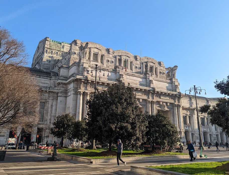 Chegados à estação central de Milão – Milano Centrale – encontrámos uma entrada enorme com duas estátuas imponentes de cavalos alados. Foi uma coisa tipo “Wow – mas é assim que são as estações de comboio em Itália?” Apesar da majestosa entrada a estação em si é bastante comum. As casas de banho deixam muito a desejar, apesar de custar 1 euro por pessoa – 1 euro!!! e às condições de higiene nem sequer uma estrela merecem. Pelo que ouvi na casa-de-banho dos homens ainda era pior em que havia pessoas prestes a vomitar devido ao belíssimo cheiro. Apanhámos o comboio por volta das 10:20 e o bilhete ficou-nos a 7 euros por pessoa.