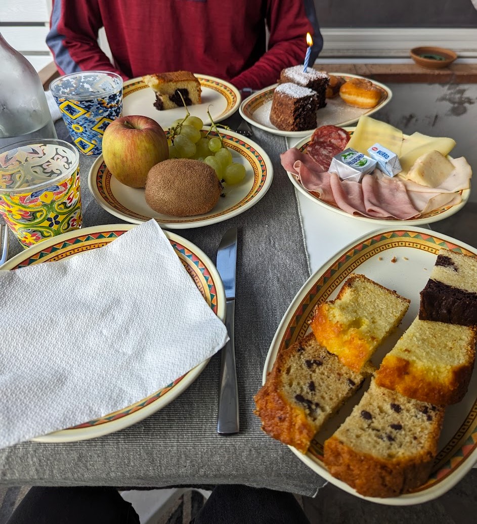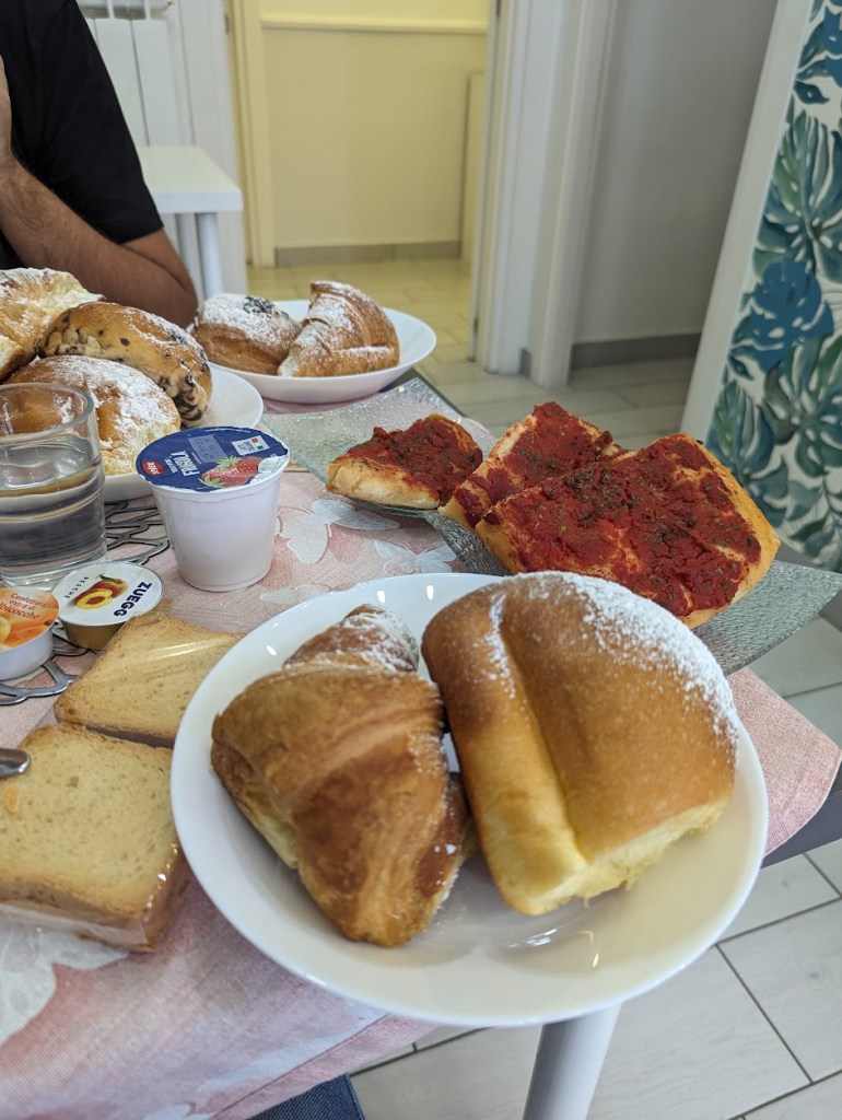 - Acomodação: Ficámos na Maison De Luxe e não poderia recomendar mais este local. Acabou por ser o melhor sítio em que ficámos hospedados em toda a viagem! Como sempre usámos o booking.com para fazer a reserva: https://www.booking.com/hotel/it/maison-de-luxe.fr.html. A localização era ótima, fomos recebidos por uma senhora muito simpática, o quarto estava limpo e nāo se ouviu barulho durante a noite toda. Acreditem que a ‘falta de barulho’ faz muita diferença, especialmente comparando com a noite seguinte em Nápoles. O pequeno-almoço então fez-nos arregalar os olhos. A nossa mesa de pequeno-almoço dava e bem para 6 pessoas. Quando cheguei à sala pensei que essa era a mesa de onde se ia buscar a comida, mas não, afinal era a nossa mesa. Infelizmente eu de manhã não sou muito de doces, mas mesmo se fosse nunca tinha visto uma coisa assim. E ainda nos deram sacos de plásticos para levarmos a comida connosco. Nós só levámos dois bolos para o dia. Uma completa loucura de coisas boas numa mesa de pequeno-almoço!