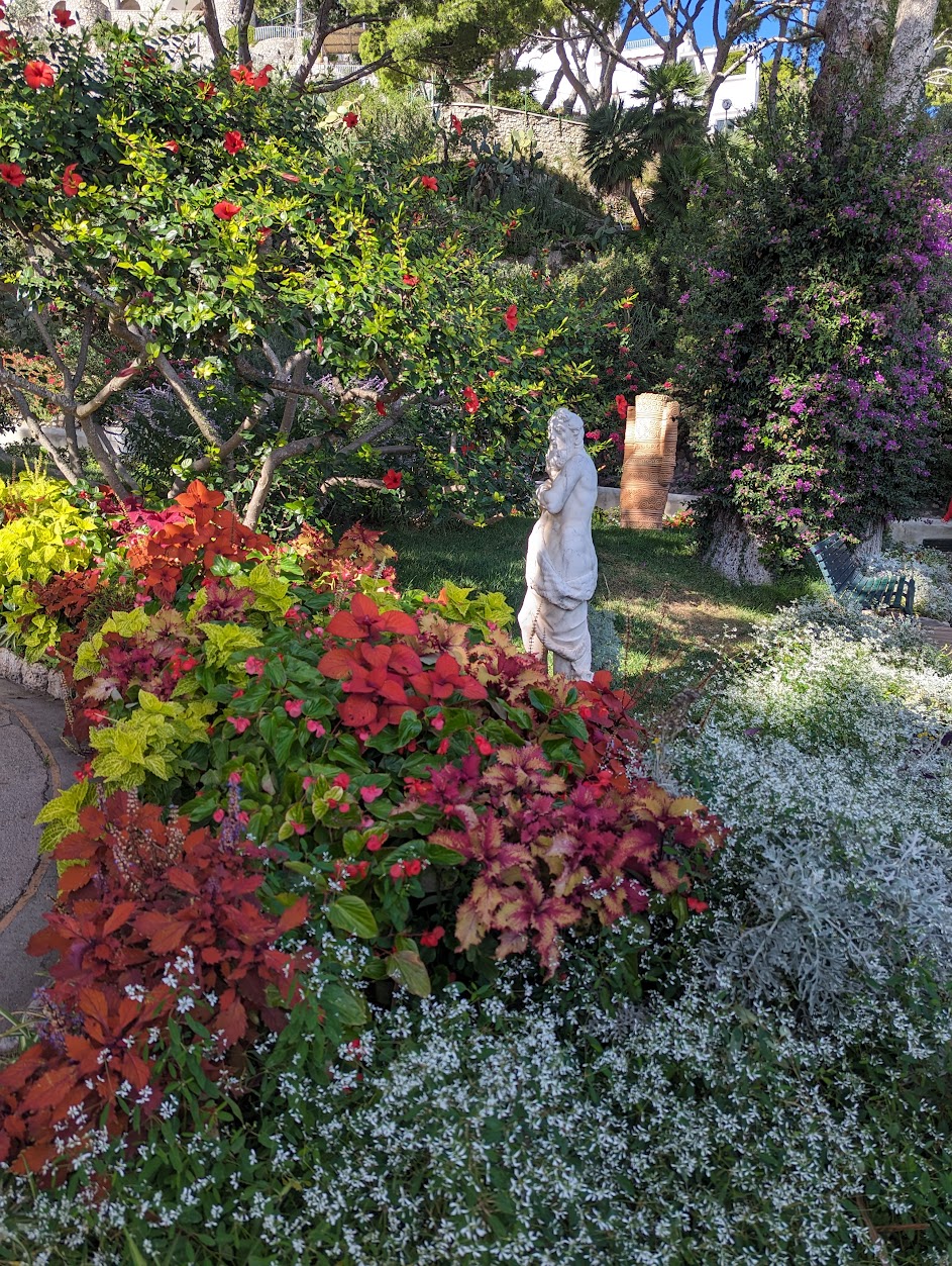 Como a gruta azul estava fechada a excursão acabou mais cedo e tivemos tempo para visitar a vila de Capri. Primeiro fomos até ao Giardini di Augusti, um pequeno jardim botânico com vista para o mar de entrada gratuita. Apesar de estarmos em Novembro havia várias flores e todo o ambiente era digno de um quadro.