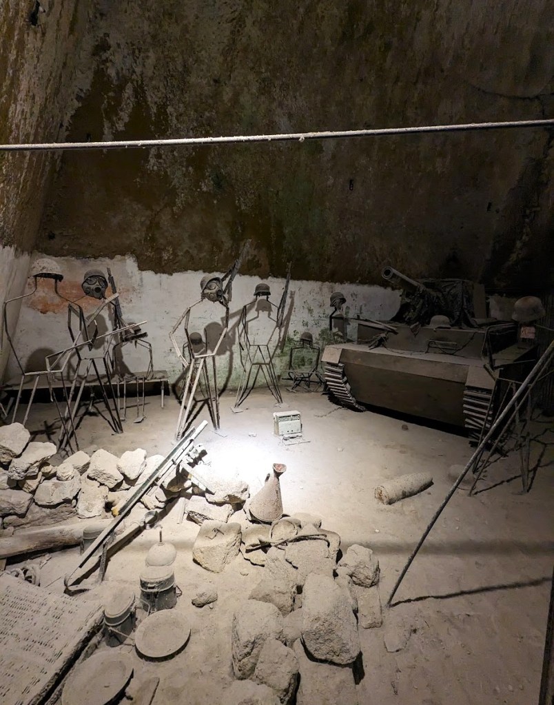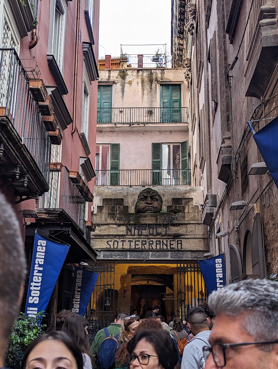 Este foi um dos pontos altos da viagem, o nosso guia era estudante de arqueologia e começou por explicar a origem daqueles túneis, como antes se encontrava ali lençóis de água e para aceder à água tinham-se aberto vários poços à superfície da cidade. Também explicou os problemas de saneamento numa altura em a água foi contaminada por fezes. Também que houve homens que vinham limpar os túneis e aproveitavam para assaltar as casas privadas entrando através destes tais poços. Que ainda hoje há casas na cidade que são de difícil venda porque se dizem ‘assombradas’ devido às visitas destes homens a quem as pessoas davam à sua presença um significado sobrenatural uma vez que desapareciam de repente (através dos poços). Incrível como a fama se prolongou ao longo do tempo. Também nos foi explicado que aqueles túneis, quando já sem água, se tornaram numa lixeira. No entanto, na segunda guerra mundial para servirem de bunkers todo o lixo foi removido. Há muito mais que é explicado durante a tour e foi aqui que entrámos chocados com o que tínhamos visto de Nápoles e saímos com um novo respeito pela cidade. Basicamente a cidade foi sendo construída por cima da cidade que antes ali se encontrava. As casas de hoje estão em cima de ruínas da cidade romana e da cidade que foi construída depois da cidade romana. A tour também inclui visita a uma casa onde a actual cave era antigamente parte de um teatro romano. Compra-se uma casa e ganha-se 3! Ou pelo menos ruínas de 2 e talvez um fantasma.