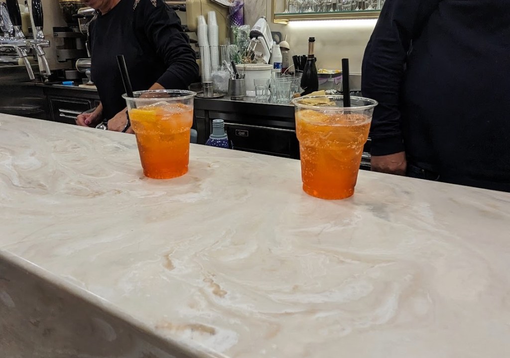 Depois destes dois fantásticos locais fomos ao Aperol Spritz, uma bebida muito apreciada em Itália e em Nápoles os preços eram mais apetecíveis como por exemplo 2 a 2,5 euros o copo. Um pouco por toda a parte da cidade encontram esta bebida.
