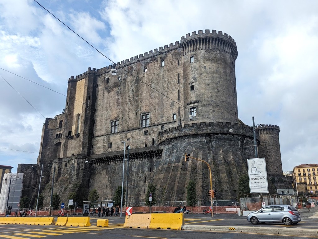 Deixo aqui apenas com uma breve descrição de ambos os castelos começando pelo Castel Nuovo, o castelo da cidade, construído entre 1279 e 1282. Foi inicialmente habitado por Carlos II de Nápoles, sofrendo mais tarde vários danos na altura da invasão húngara em 1347 e francesa em 1494. O Castel dell’Ovo é mais antigo do que o Castel Nuovo, tendo este sido construído em 1128. Este edifício teve vários papéis como o defensivo, prisional e residencial para a família real. A visita é gratuita, apesar de o termos encontrado encerrado (de momento encontra-se temporariamente encerrado para renovações) mas é impossível perdê-lo, um castelo a entrar pelo mar dentro.