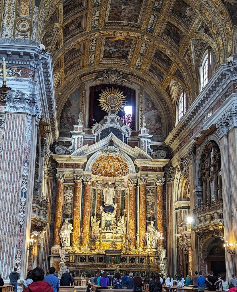E sabem que mais? Este sangue ainda hoje tem um grande impacto. Pois de acordo com a tradição em determinadas datas, 19 de setembro, 16 de dezembro e o primeiro sábado de maio, o santo faz um milagre, o seu sangue transforma-se em líquido. De acordo com a tradição, se o sangue não se liquefizer um desastre iminente vai acontecer. Se liquefizer, o dito ‘milagre’, então há um bom presságio. Verdade ou talvez não, mas as últimas vezes que não se liquefez foi em 1939 e 1940 que coincidiu com o início da segunda guerra mundial e novamente em setembro de 1943 altura em que Itália foi invadida pelos nazis. Também em 1980 quando Irpinia, localizada a 50Km de Nápoles foi atingida por um terramoto devastador. Última vez em 2020, um aviso mais ou menos atrasado do COVID? Como disse o guia, muitos sabem que não é real, ou pelo menos há várias dúvidas sobre a sua veracidade, mas faz parte da cultura naquela parte do mundo e isso tem que se respeitado, acreditemos nós ou não.