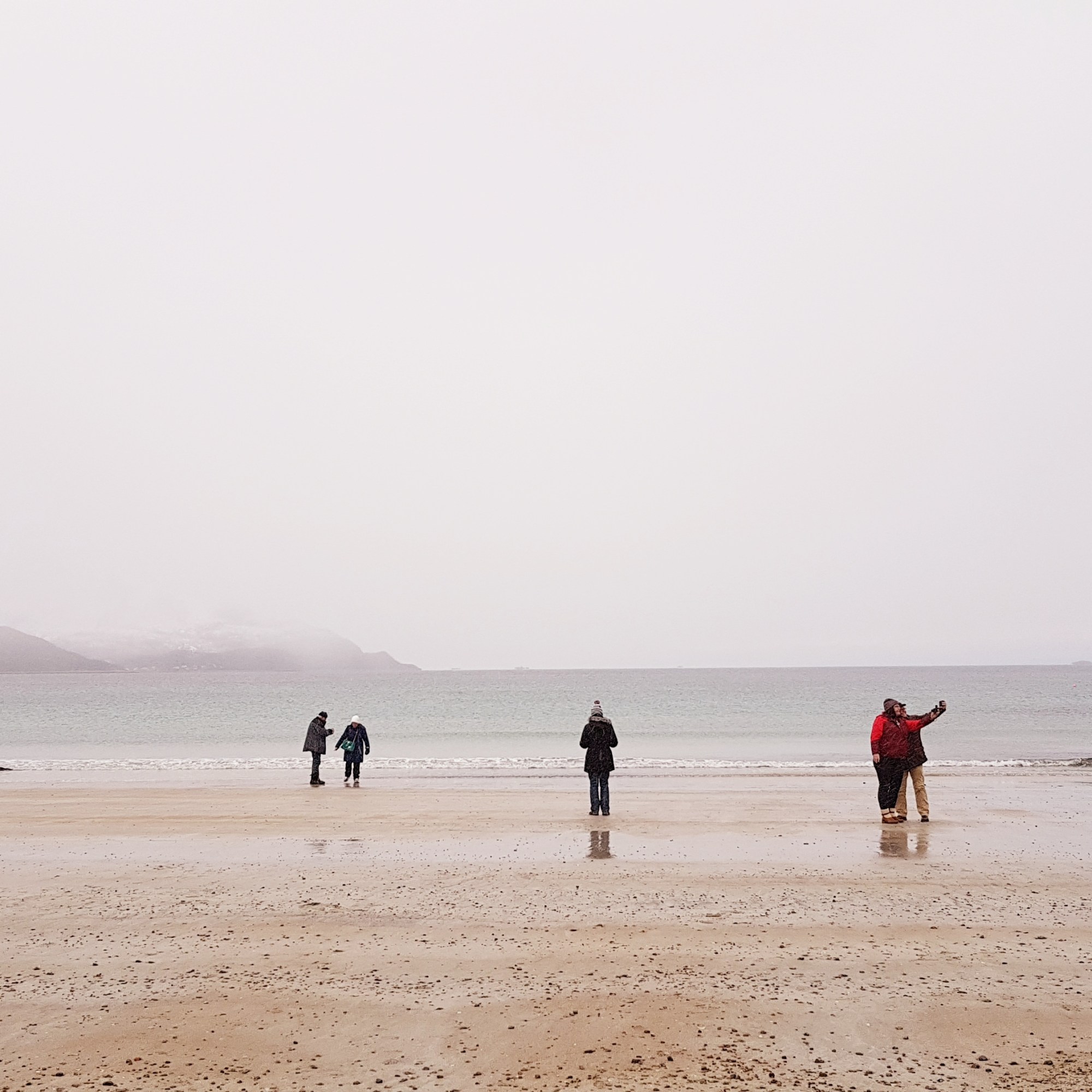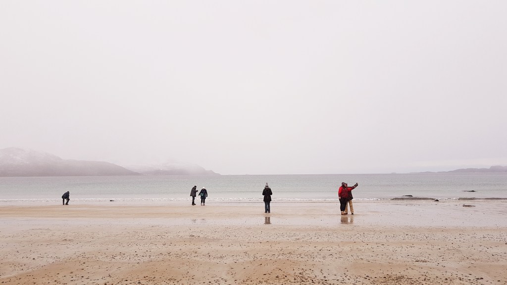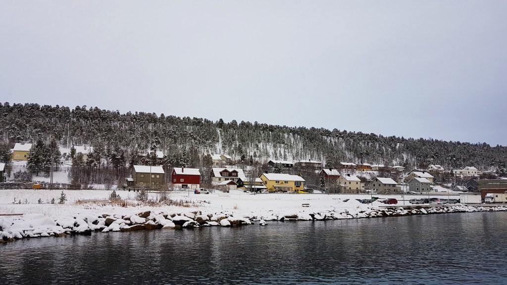 O barco atracou numa pequena aldeia piscatória, Kaldjforden onde apanhámos o autocarro que nos levaria de volta à cidade. Pelo caminho parámos numa praia lindíssima localizada ainda na zona do fiorde, onde pude tocar pela primeira vez no oceano Árctico.