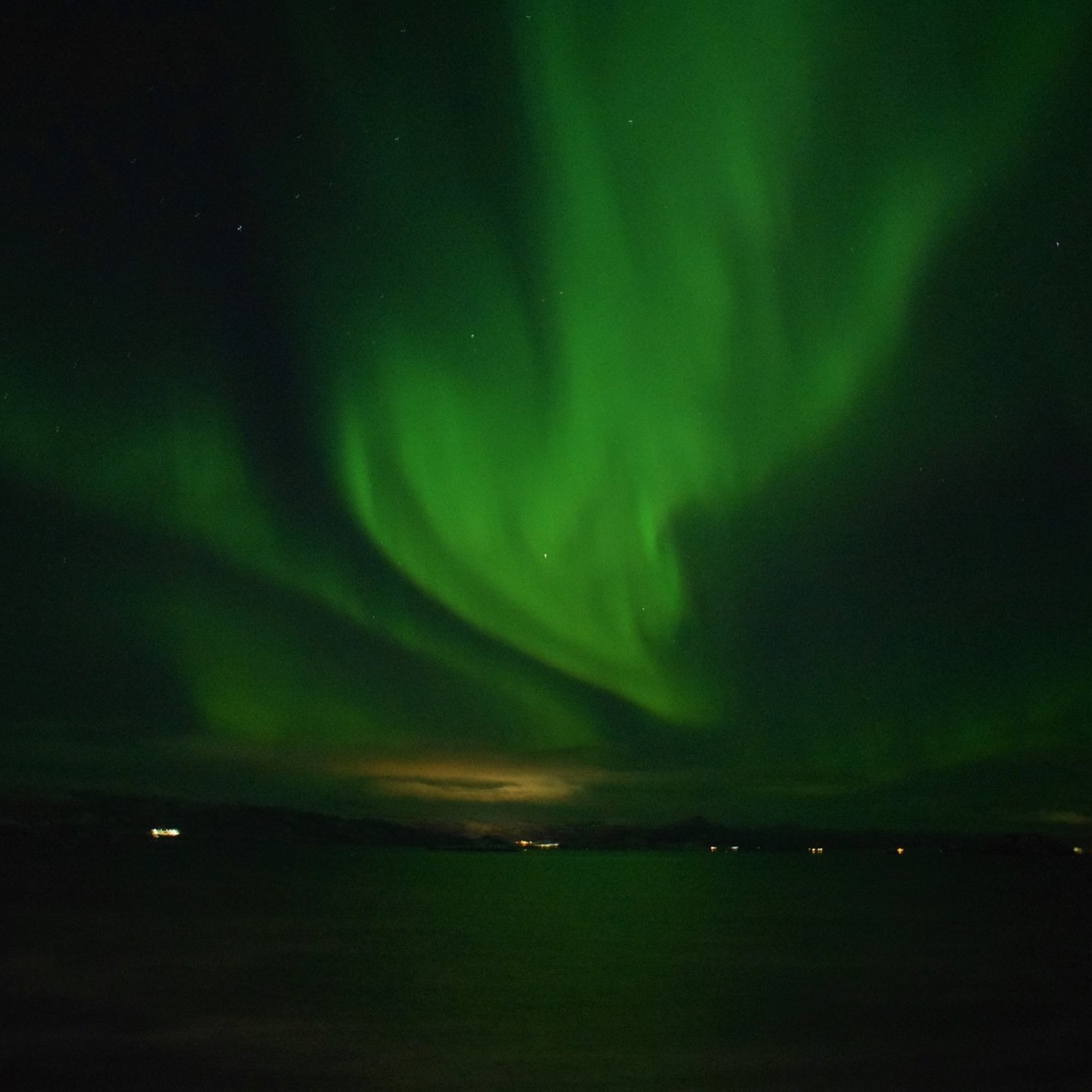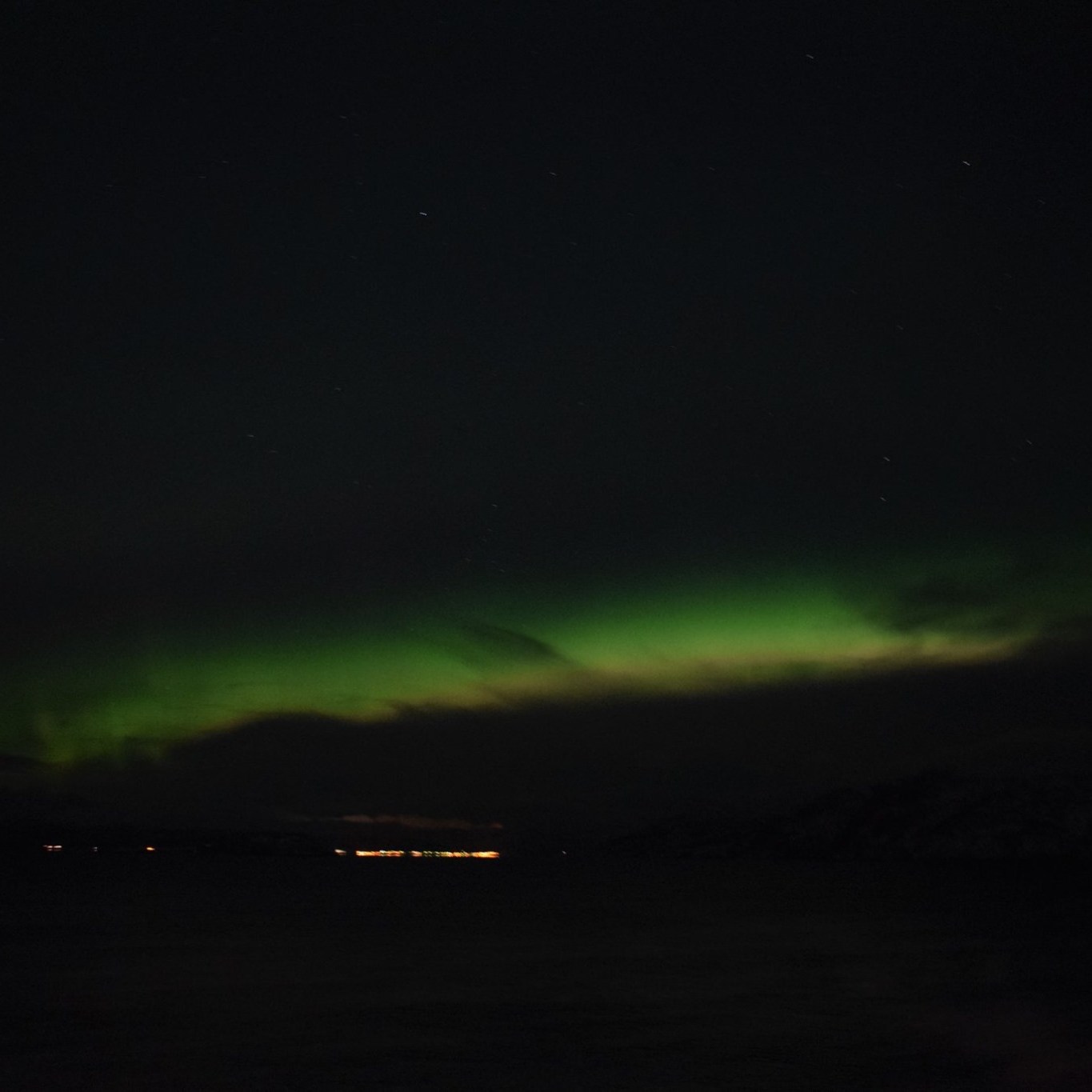 Na noite a seguir, partíamos do cais por volta da meia-noite, e a história foi outra. Os 3 elementos necessários juntaram-se e tivemos o espectáculo em frente dos nossos olhos. E fomos tão sortudos porque podemos observar as Luzes do Norte desde as 6 da tarde até perto das 2 da manhã (hora em que decidimos ir para a cama). Durante esta noite apercebemos-nos o quanto é importante é marcar um quarto com varanda no cruzeiro. Estavam -9ºC e nunca conseguiríamos estar tanto tempo seguido no exterior. Com a varanda podemos aquecer-nos no quarto por uns minutos e depois voltar para a varanda e assim sucessivamente durante toda a noite.
