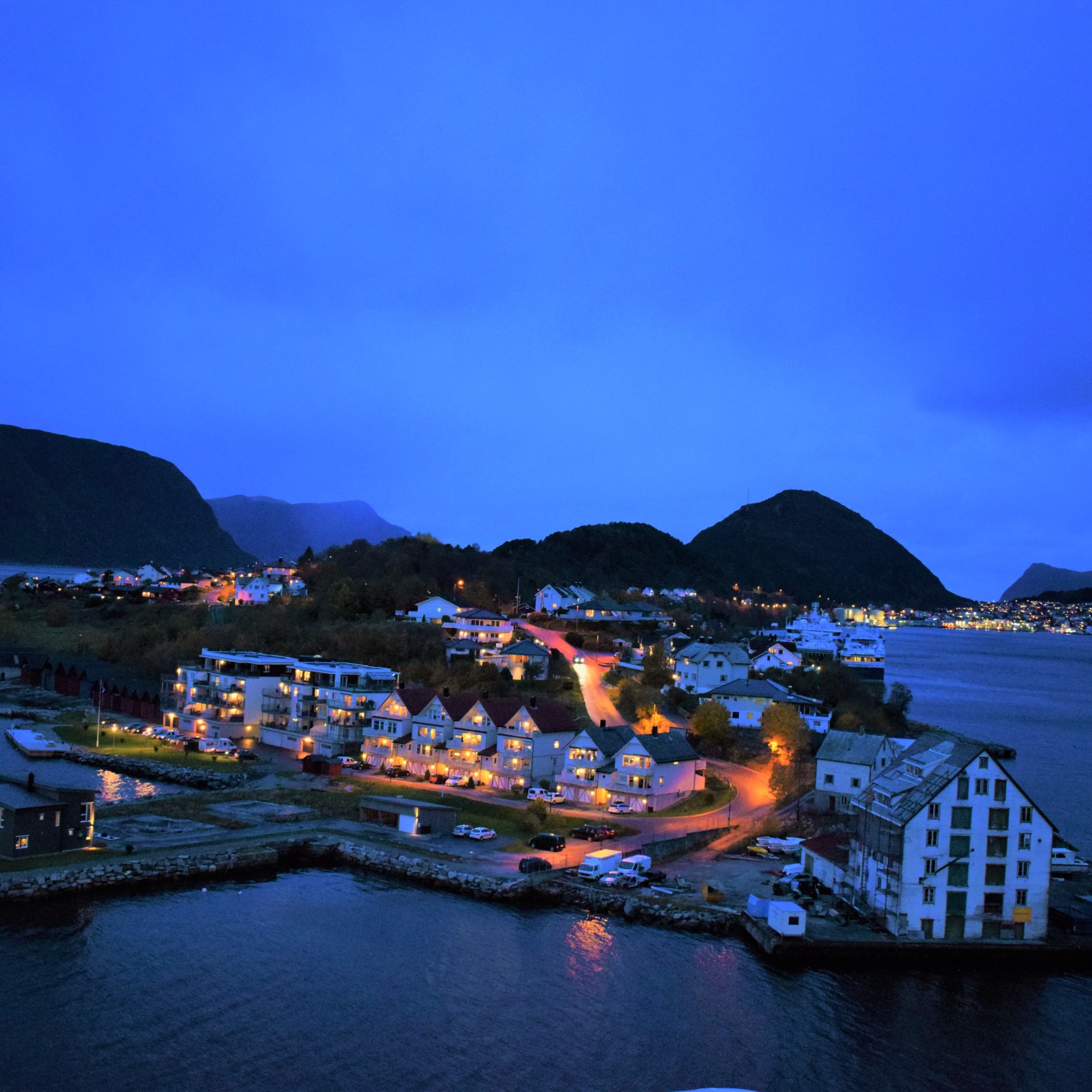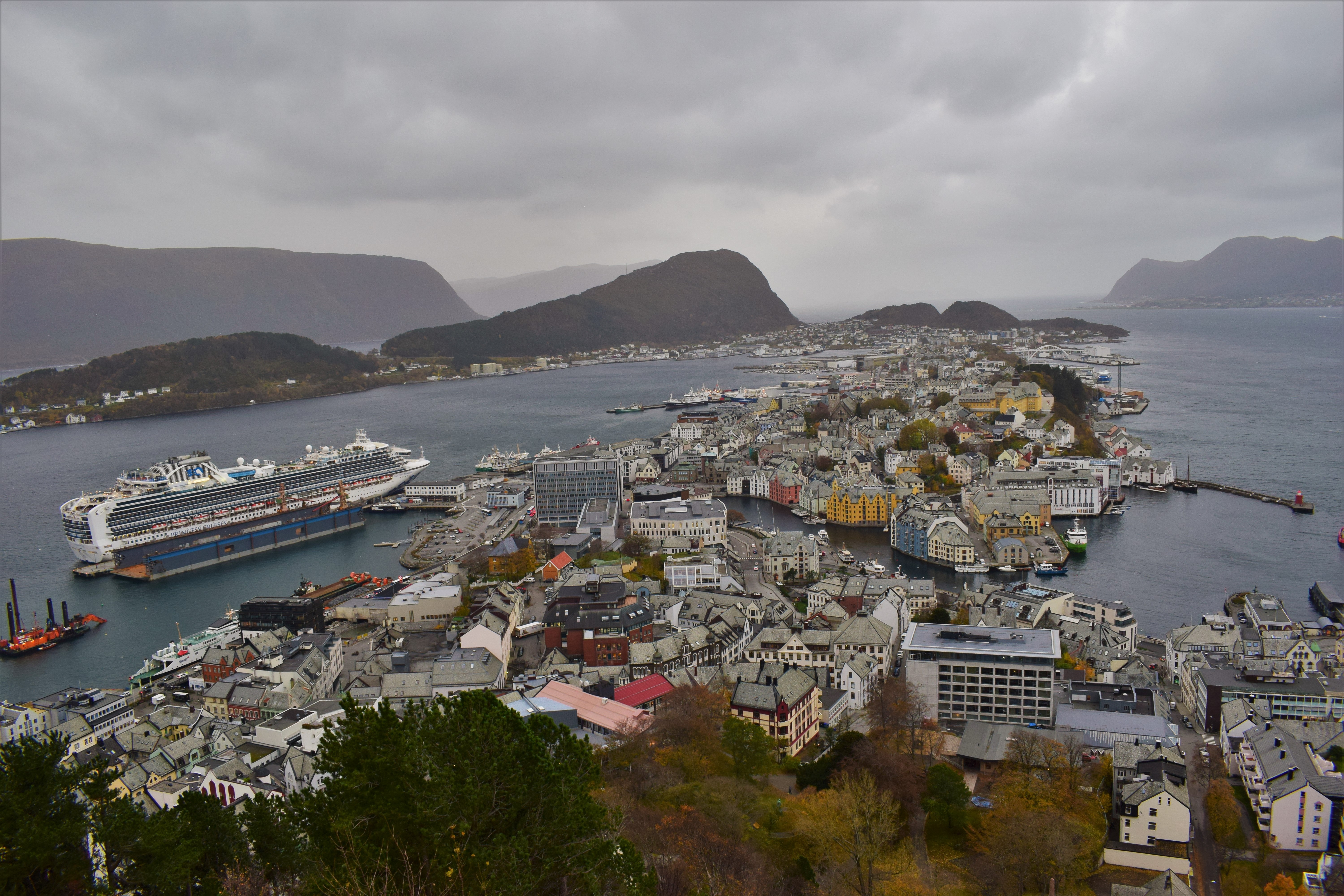 Esta foi a primeira cidade que visitámos na Noruega. Apesar de a cidade ter sido povoada desde a era dos Vikings, Ålesund foi oficialmente fundada em 1848. Esta pitoresca cidade foi reconstruída depois de um catastrófico incêndio em 1904 que ardeu incontrolavelmente durante 16 horas destruindo 800 casas. E por isso mesmo existe hoje um conjunto de vários estilos arquitectónicos pela cidade como o “Art Noveau” e o estilo “Viking”, sendo por isso considerada a cidade mais bonita da Noruega. Existem edifícios lindíssimos ornamentados com torres, com figuras florais e enfeites medievais.
