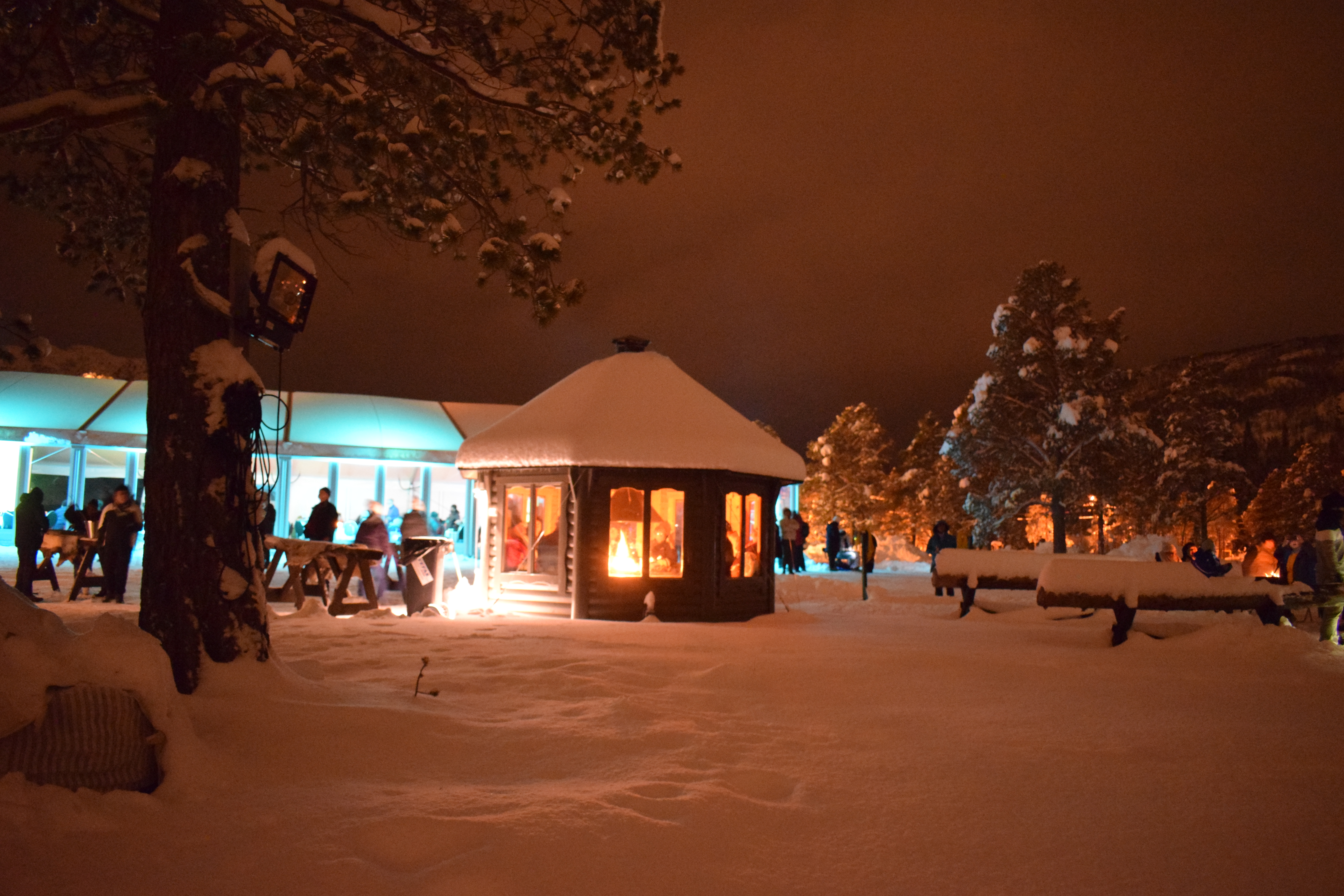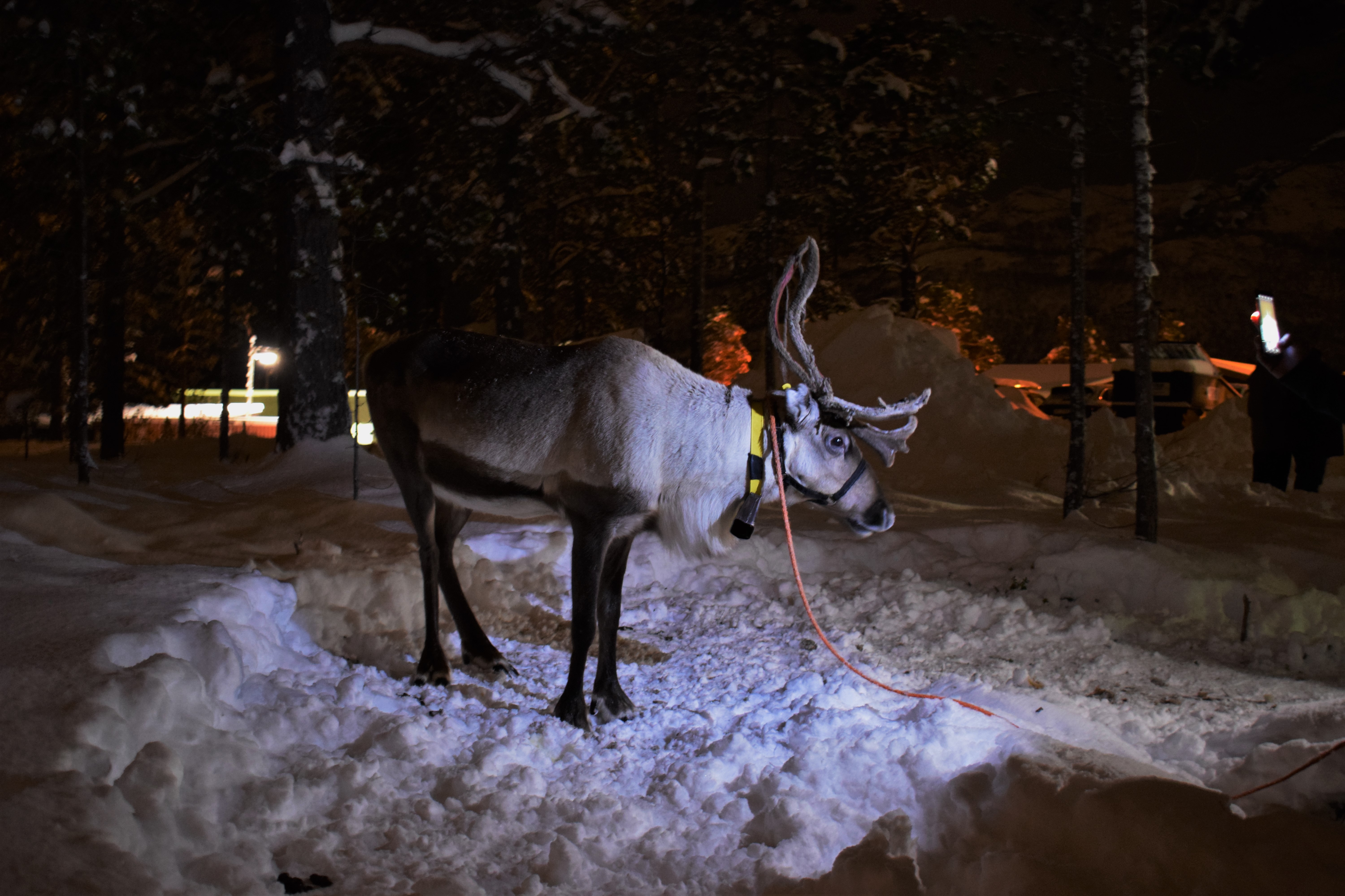 Durante a nossa primeira noite juntámos-nos à excursão “In Search of the Northern Lights” (à procura das Luzes do Norte) onde fomos levados para um campo afastado da cidade e onde haviam pavilhões, casinhotas com fogueiras, fogueiras no meio da neve e até uma rena. Para confirmar as nossas chances de ver a Aurora para além de vermos a meteorologia também usámos o website http://www.aurora-service.eu/aurora-forecast/ que nos dá uma previsão da intensidade da Aurora boreal a cada hora. Nessa noite apesar de a previsão ser alta o facto de haver nuvens, aliás estava a nevar, não nos permitiu presenciar às Luzes do Norte.