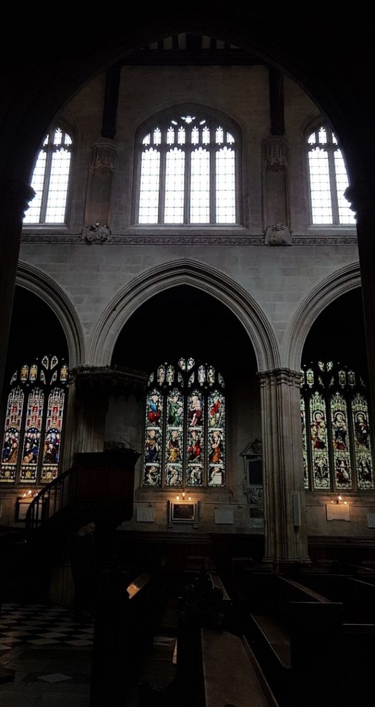 Chegámos ao centro de Oxford ainda não eram 10 e fomos logo para uma das partes centrais da cidade, talvez um dos locais mais fotografados, a praça onde se encontra a Câmara Radcliffe. O edifício funciona como biblioteca e faz parte do complexo das bibliotecas Bodleian que falarei já de seguida. Esta livraria faz parte da universidade de Oxford, como basicamente 90% da cidade. À volta deste edifício que é um ponto obrigatório de paragem encontra-se a Igreja da Virgem Maria, a qual tivemos oportunidade de visitar. Lembro que a igreja também pertence à faculdade (esse vai ser o tema de qualquer local que tenhamos visitado, não seria a universidade de Oxford uma das mais conceituadas e conhecidas mundialmente).