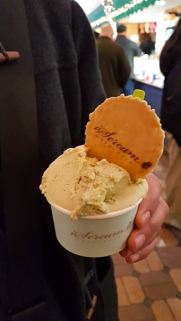 O restaurante está muito bem avaliado na internet e ao chegarmos havia uma fila enorme. Para dizer a verdade o restaurante estava a abarrotar e talvez por isso eles também tenham a opção de take-away. Havia bastante escolha entre caris, noodles, arroz, pratos tradicionais chineses e as porções são bastante generosas. Um prato bem aviado ficou a cerca de 10 euros. Se fiquei fã? Nem por isso, mas consigo perceber o porquê de este restaurante ser a escolha de muita gente. Afinal boa quantidade e barato chama sempre clientela. Mas não foi nada de especial, não achei a comida particularmente saborosa e o arroz estava um bocadinho para o lado do peganhento. Se voltava aqui? Não sei se sim, talvez para experimentar o Pad Thai. Para digerir a comida fomos dar uma volta pelos corredores do mercado que existe desde 1770. Há lojas para vários gostos de roupa, joalharia, restaurantes, floristas e gelatarias. Parámos na gelataria IScream onde o gelado era bastante bom e onde se encontram vários doces de encher o olho. Nada como um bolo gelado de pistachio para alegrar o dia chuvoso como aquele.