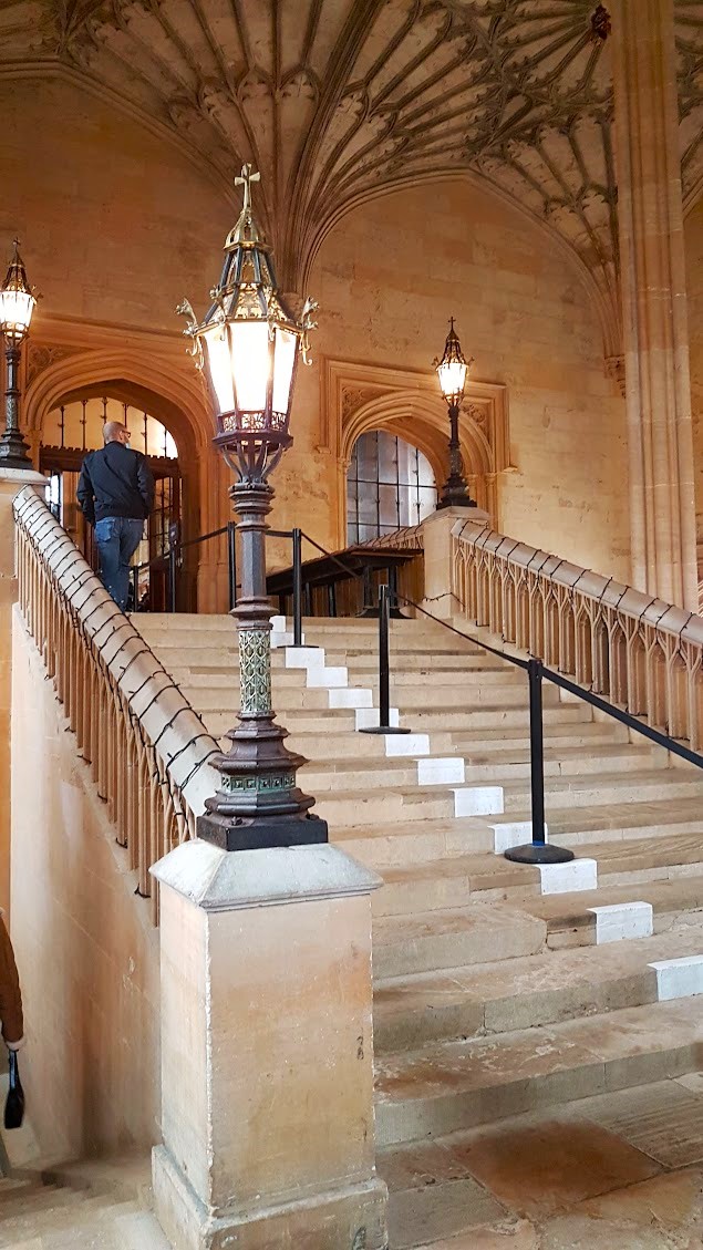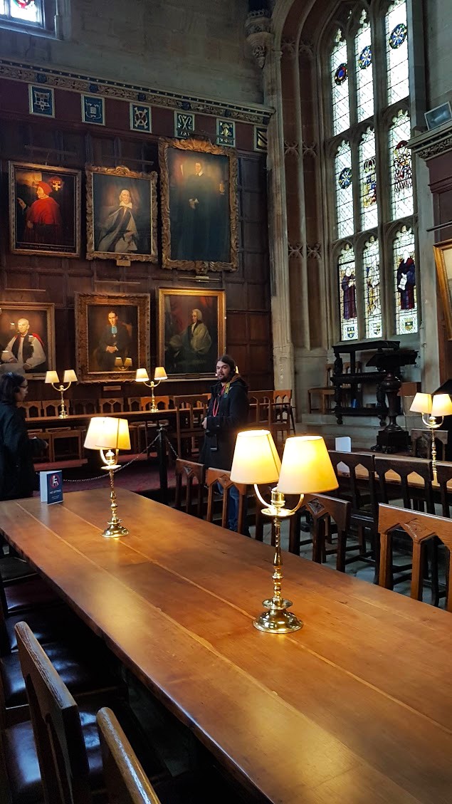 Depois de toda a gulosice e com um céu mais amistoso dirigimo-nos para a catedral Christ Church. Primeiro foi preciso ir ao Ticket Office, onde verificaram os bilhetes e nos deram os áudio-guias que foram relatando acontecimentos e detalhes das várias salas, escadarias e corredores por onde íamos passando. Foi no vão das escadas da imagem abaixo o palco de filmagem da entrada de Harry Potter pela primeira vez em Hogwarts. A grande sala da cantina, que de cantina Não tem de nada, foi a inspiração para o grande salão de jantar que aparece nos famosos filmes do rapaz que sobreviveu. A mesma tour guia-vos através da catedral e da parte exterior dos aposentos dos estudantes da universidade.