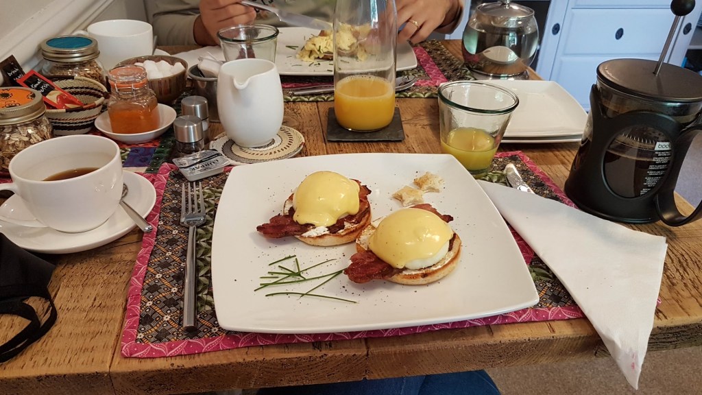 A nossa viagem começou em Matlock. Marcámos através do booking.com a estadia de uma noite em Elen House Bed and Breakfast. Nós escolhemos sempre sítios que incluíssem tanto estacionamento como pequeno-almoço. O quarto era de tamanho razoável, com uma decoração agradável, numa localização sem barulho e perto do centro da cidade de Matlock. Tenho a salientar a simpatia de quem nos recebeu e o melhor pequeno-almoço de sempre. Eu escolhi eggs benedict e o meu marido ovos mexidos com salmão fumado. A apresentação dos pratos mostra um cuidado superior ao que normalmente se vê nos alojamentos do tipo para não falar do sabor que era de comer e chorar por mais.