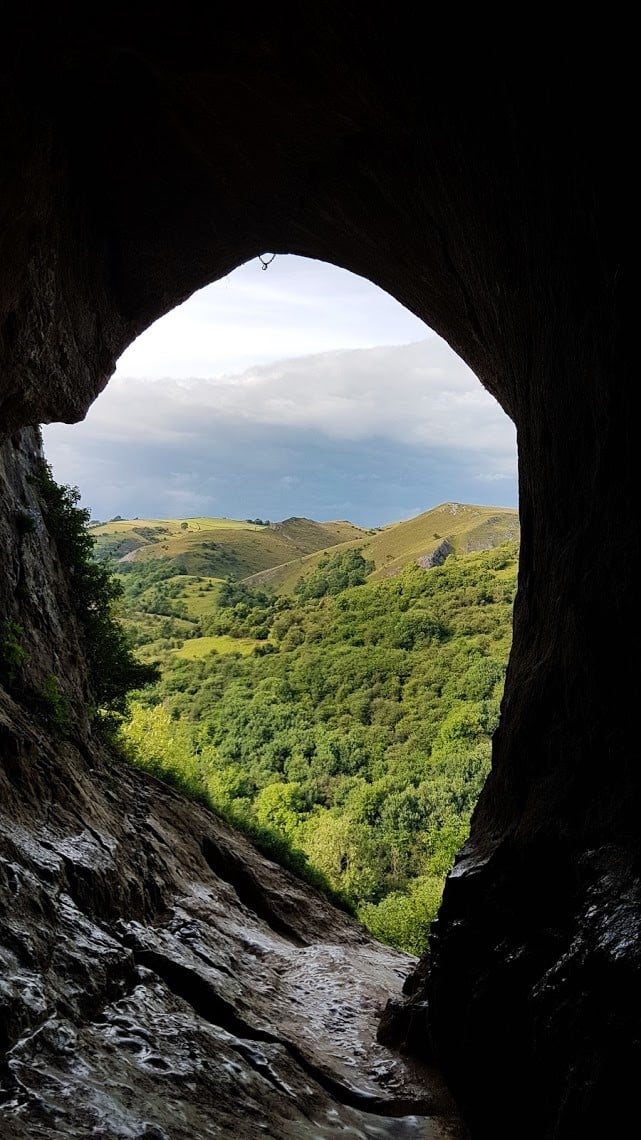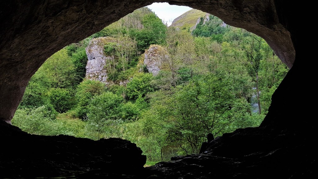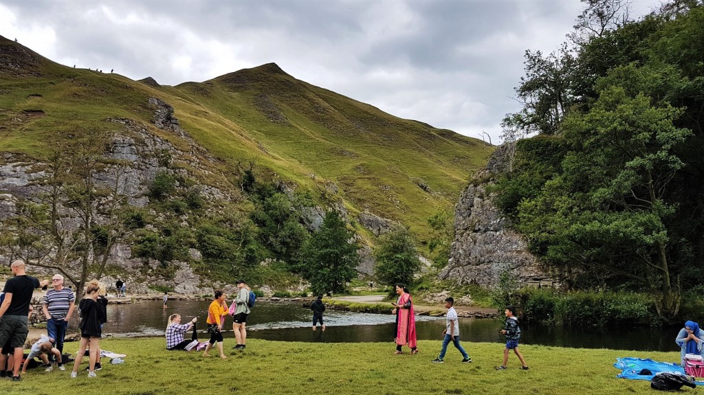 Seguindo a nossa viagem para este, depois de visitar os Heights of Abraham, fomos para Dovedale. Dovedale fica no meio de um vale e atrai muitos turistas pela sua beleza natural. A parte mais famosa de Dovedale são os chamados “Stepping Stones”, pedras no meio do riacho alinhadas de forma a pudermos passar de uma margem para a outra. Aqui têm duas opções de trilhos, subir a montanha ou então dar à volta à base do vale. Nós seguimos a segunda opção até às grutas Dove Holes.