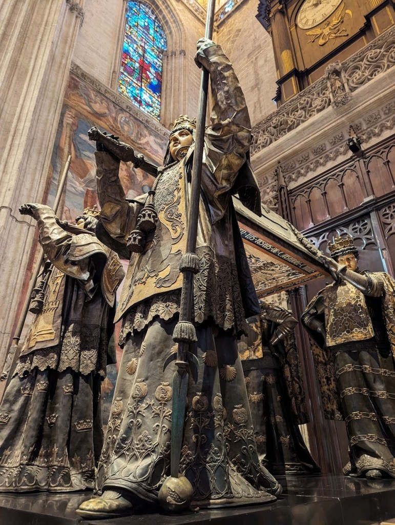 Depois de passarmos algum tempo na fila que estava à frente do portão principal à espera que a catedral abrisse, ficámos a saber que estávamos na fila errada. Nós tínhamos comprado os bilhetes com antecedência e como a catedral era um dos locais mais visitados, tínhamos comprado os bilhetes para ‘saltar a fila’ (skip-the-queue). Não sei se precisávamos ter tido tanta preocupação porque chegámos bastante cedo, mas depois de ler que houve gente a estar horas à espera na fila para entrar, pensámos que era melhor prevenir. E aconselho a fazerem o mesmo e a comprarem este tipo de bilhetes, especialmente se visitarem Sevilha em época alta: https://www.seville-cathedral-tickets.com/