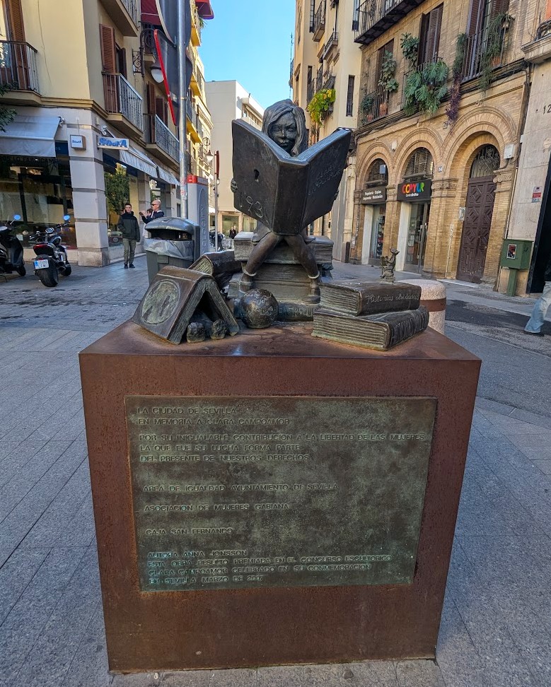 Também gostava de realçar a estátua que podem ver na fotografia abaixo à esquerda, uma homenagem a Clara Campoamor, considerada uma das primeiras mulheres a participar e a promover o movimento feminista e uma das primeiras sufragistas em Espanha. Clara era advogada, política e escritora, e teve um papel vital na luta a favor da igualdade de géneros e dos direitos das mulheres.