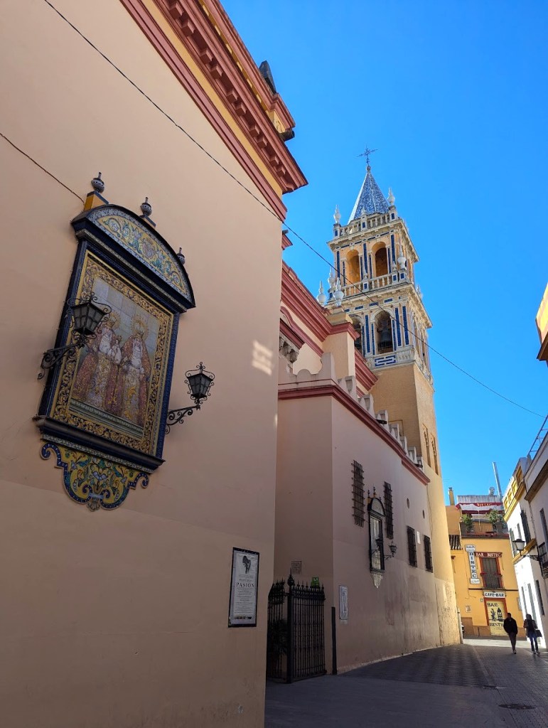 Passámos pela capela de São José a qual já tínhamos visitado no primeiro dia mas só a encontrámos ao andarmos a explorar a zona ao pé do nosso hotel, uma vez que fica meia escondida entre as ruas estreitas do centro histórico de Sevilha. E foi a bonita fachada da igreja que nos incitou a sua visita. Esta igreja de 1746 é um valioso exemplo do estilo barroco e que pode ser incluído em qualquer roteiro que passe por esta parte de Sevilha onde para além desta capela também se encontram bonitas e inesperadas pinturas ou cerâmicas.