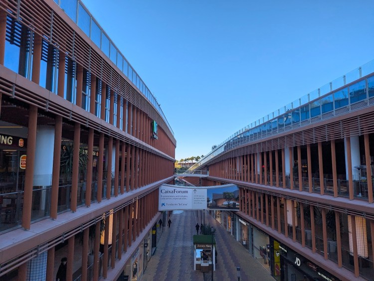 Depois de sair um ‘bocado’ chateada do Bar Triana e já sem grandes planos até ao final do dia continuámos pela estrada com ideias de passar a ‘Puente del Cristo de la Expiración’ para o outro lado do rio. Pelo caminho ainda entrámos no centro comercial Torre Sevilla para certos actos fisiológicos aka ir à casa de banho e já agora dar uma volta por ali. Este é um centro comercial como muitos outros, a única diferença é que é assim meio ao ar livre como podem ver na fotografia abaixo.