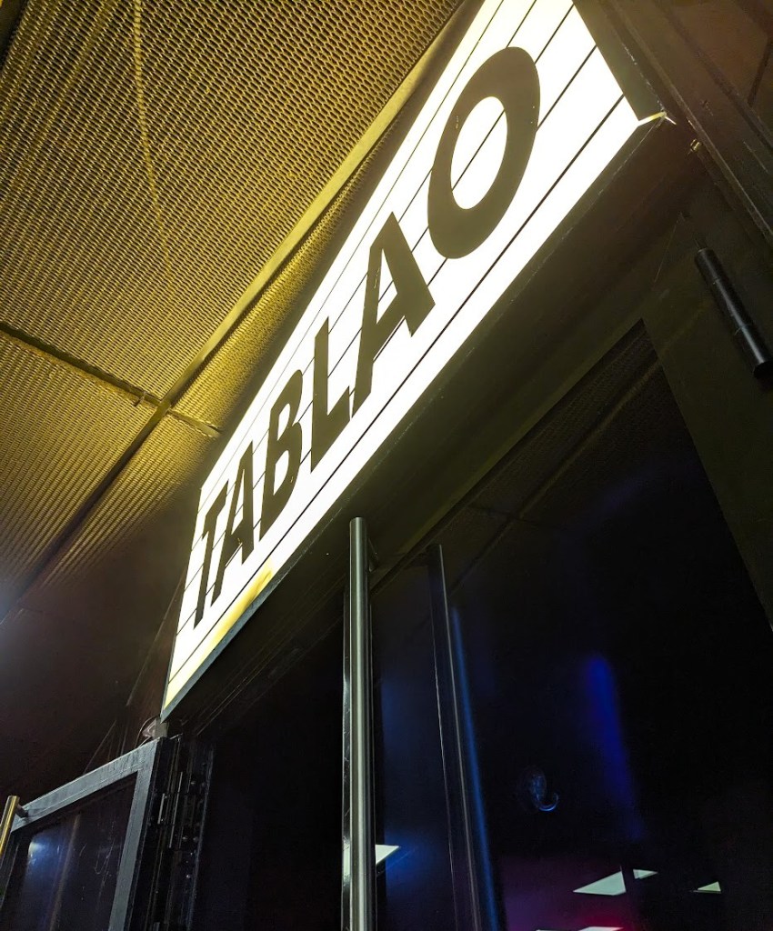 Chegámos cerca de 15 minutos antes da hora marcada, depois de andarmos meio perdidos, já que a entrada para o espectáculo ficava meio escondida entre as lojas do mercado que àquela hora estavam quase todas fechadas. Quando finalmente descobrimos o sítio certo já havia fila à porta e como a entrada para a sala é por ordem de chegada, quando mais à frente na fila se está, maior é a probabilidade de se ficar com os melhores lugares. Quando as portas abriram e depois de mostrarmos os bilhetes, entrámos para uma sala de luz reduzida, num ambiente intimista e quase ilegal, apesar de não ser o caso. (Bem, espero eu). Sentámo-nos numa mesa assim de canto para o palco na segunda fila. Passado um bocado de estarmos sentados vieram os empregados perguntar que bebidas gostaríamos de escolher para aquela noite. Se bem me lembro as escolhas variavam entre cerveja, tinto de verano, vinho e cocktail. Ambos escolhemos o cocktail e tenho a dizer era muito, mas muito bom. Não sei bem o que tinha, mas pelo menu de cocktails que eles têm no website (ver aqui em cocktails) penso que era ou Dama de Noche ou La Mula de Xerez. Mas não tenho a certeza já que a escolha naquela noite se apresentava apenas como ‘cocktail’.