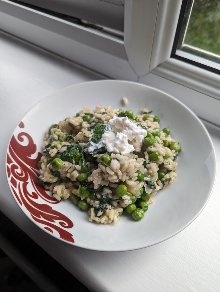 - Risotto com ervilhas, espinafres e queijo de cabra