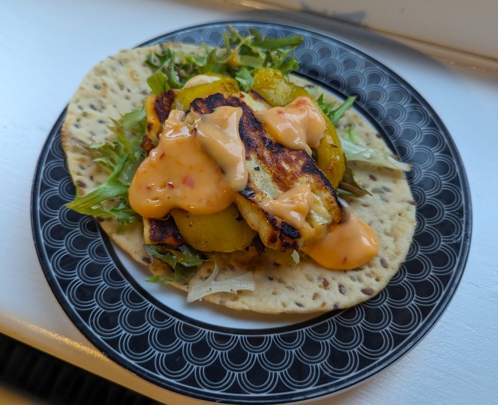 - Tosta de milho cremoso, tomates secos e cebolinho