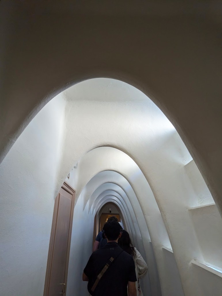 No último andar, a zona dos criados, encontramos uma simplicidade que se destaca dos outros pisos com vários arcos simples pintados de branco. Há quem acredite que estes arcos representam os ossos da caixa torácica de um animal.