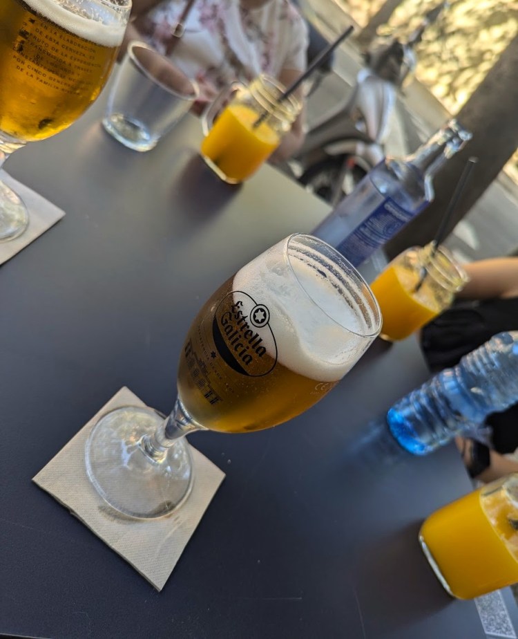 O restaurante fecha bastante tarde e quando chegámos já era perto das 10 da noite. Para petiscar pedimos algumas das iguarias locais como as patatas bravas, calamares e pimientos padrón. Também aqui os preços foram bastante confortáveis para as nossas carteiras. Tudo acompanhado com um grande copo de Tinto de Verano.